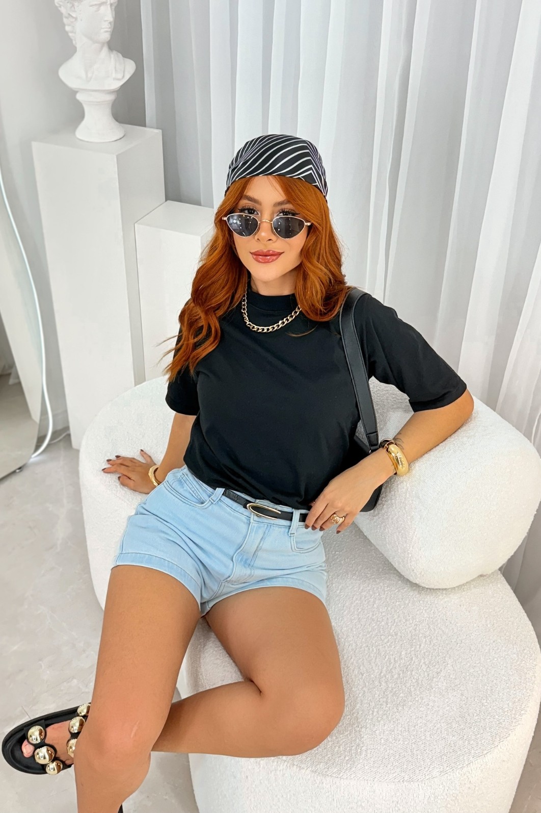 Modelo usa tamanho P