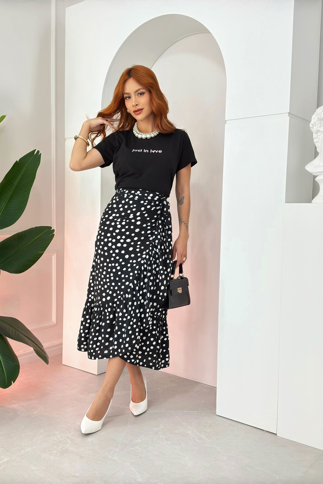 Modelo usa tamanho P