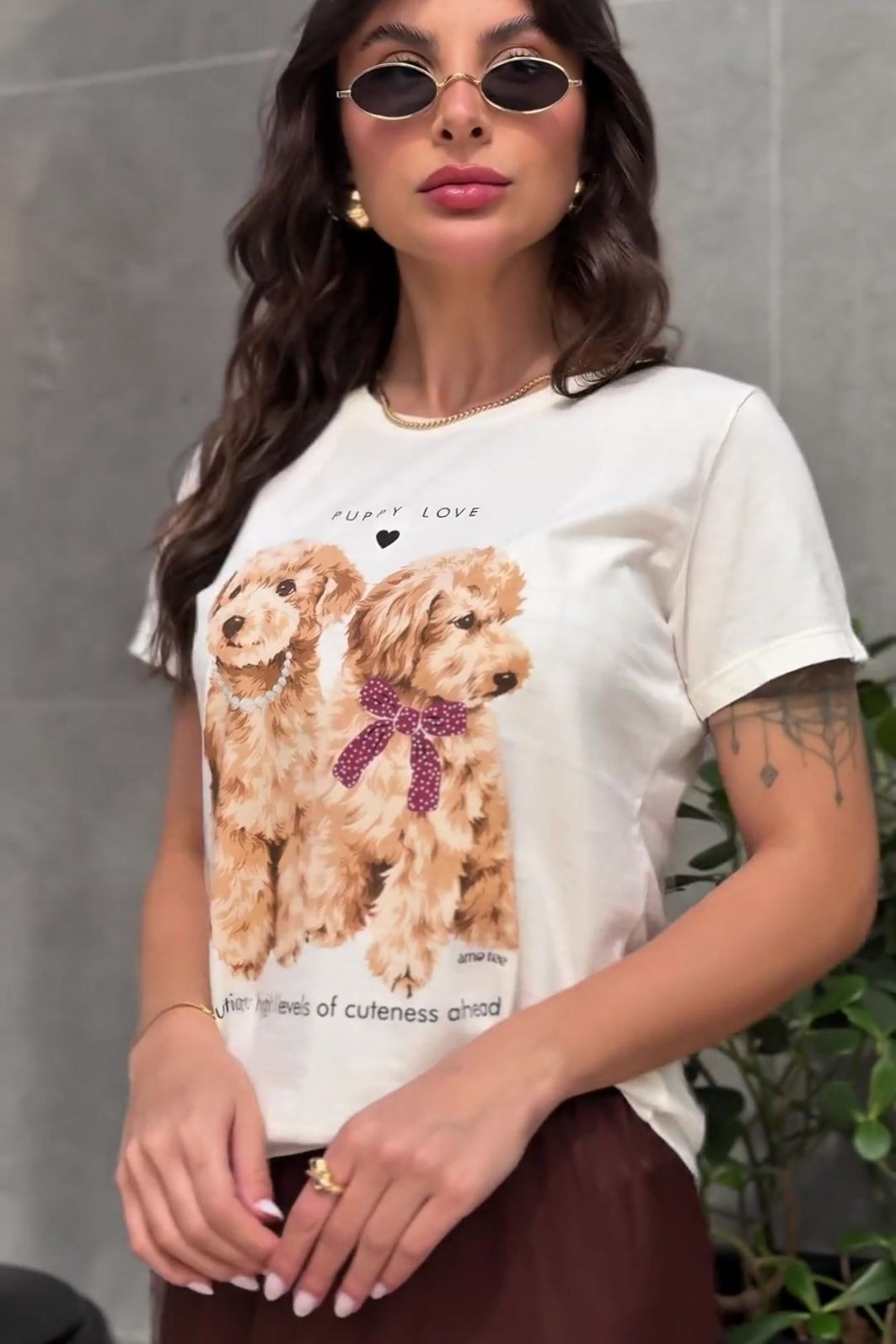 ESTAMPA DIZ: AMOR A CACHORRINHOS, CUIDADO: ALTO NIVEL DE FOFURA A FRENTE.